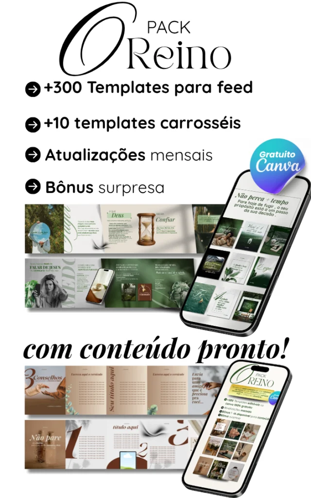 O PACK O REINO é a ferramenta que faltava pra você começar a cumprir seu chamado postando com confiança, consistência e estratégia.